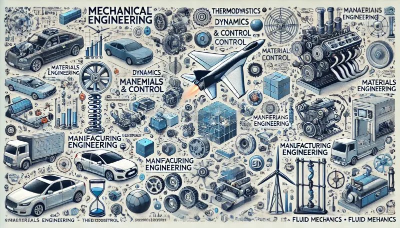 기계 공학은 매우 넓은 영역을 포괄하며, 주요 분야는 다음과 같습니다: