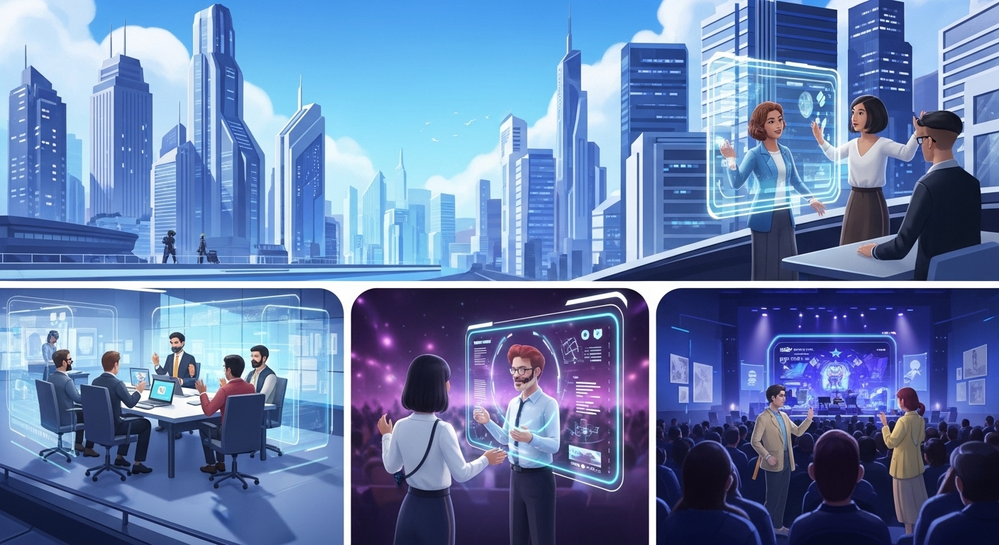 | 회의 | 화상 회의, 전화, 이메일 | 가상 회의실에서 아바타로 참석, 3D 자료 공유 |