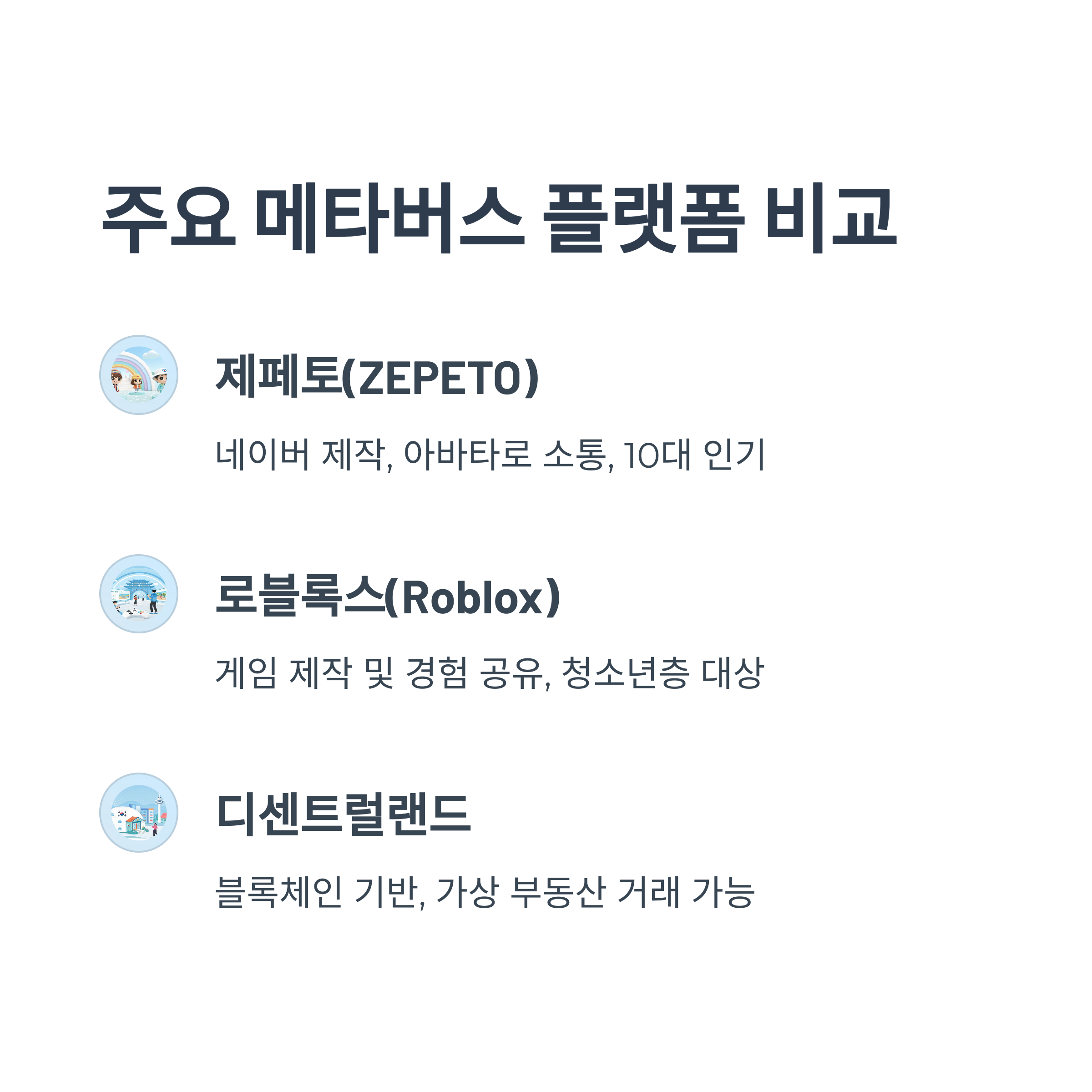 주요 메타버스 플랫폼 비교
