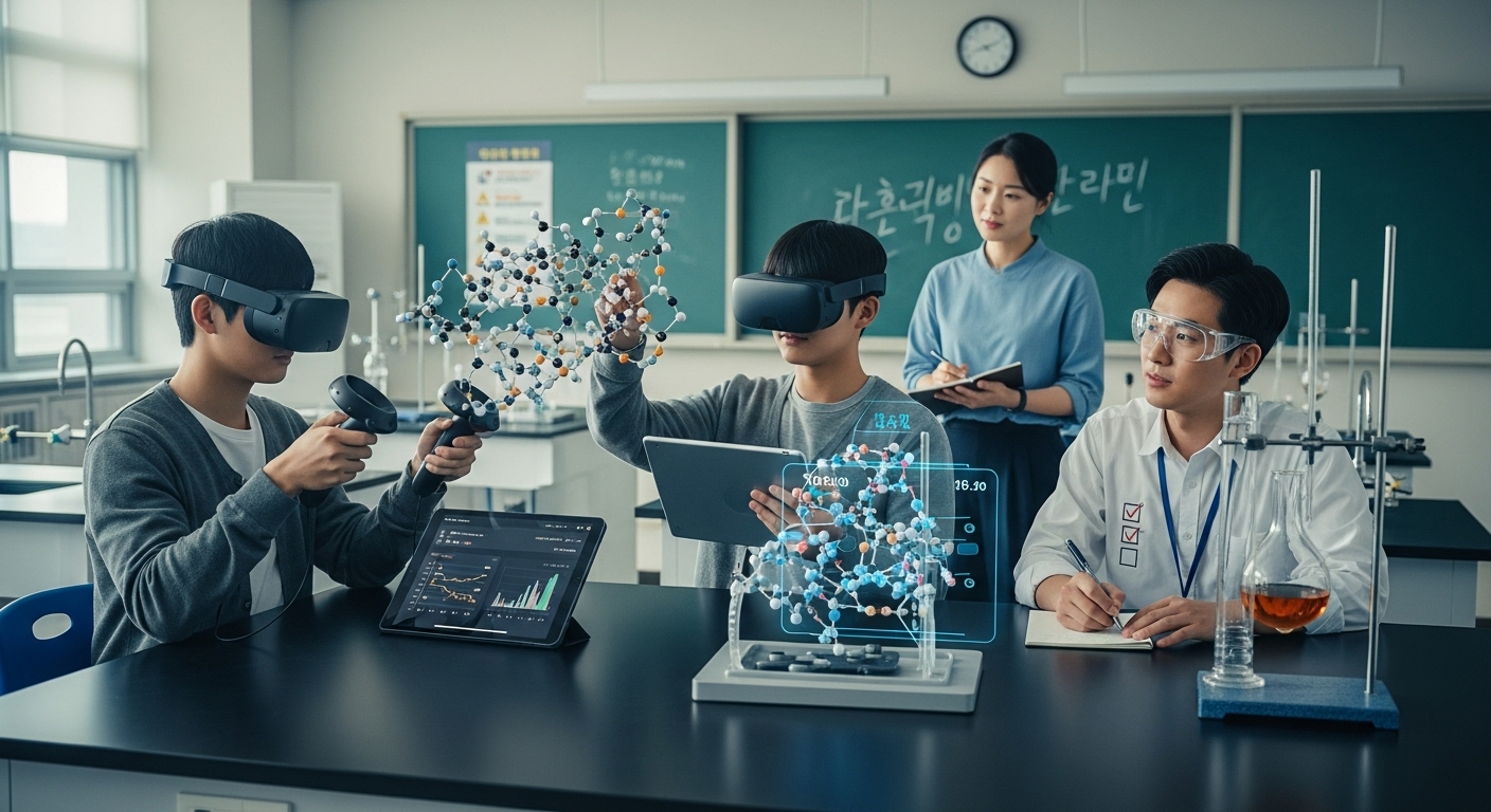 과학 과목은 추상적이고 보이지 않는 현상이 많아 학생들이 개념을 이해하기 어려운 경우가 많습니다. 예를 들어 전자기장, 분자 구조, 천체의 운동 등은 눈으로 직접 관찰하기 어렵지만, VR/AR은 이러한 개념을 3차원 공간에서 시각화하여 학생들이 상호작용하며 이해하도록 돕습니다. 특히 실험 장비 부족이나 안전 문제로 제한된 실습도 VR을 통해 안전하게 반복할 수 있습니다. 화학 실험에서 위험 물질을 다루는 대신 VR 시뮬레이션으로 반응 과정을 관찰하고 실험 절차를 연습하면 안전사고를 줄이면서 실습 시간을 늘릴 수 있습니다.