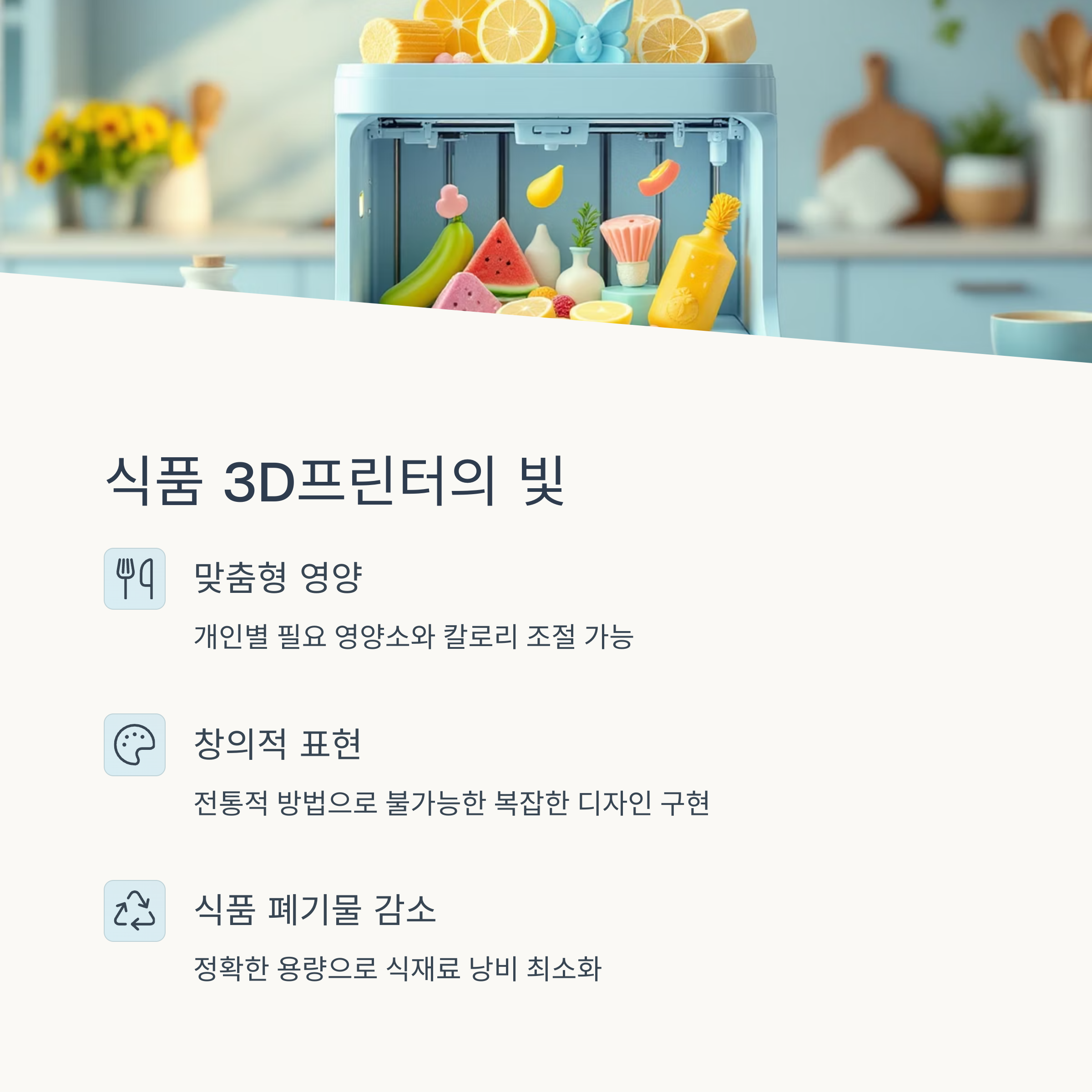 식품 3D프린터에 대해 알아볼수록, 저는 이 기술이 가져올 변화에 대한 기대감과 함께 약간의 우려도 동시에 느끼게 됩니다. 마치 동전의 양면처럼 말이죠. 여러분도 그러신가요?