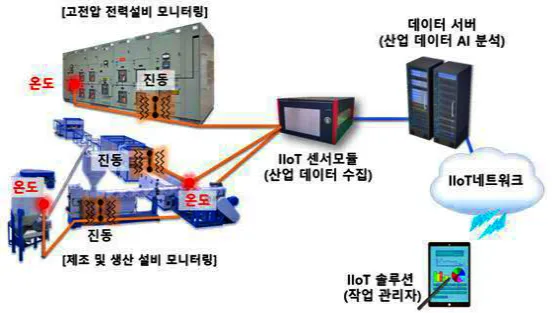 예를 들면 공장에서 전력설비에 대한 모니터링을 하고 있다. 온도나 진동을 센서를 통해 측정하고 있으며, 이러한 센서의 측정데이터는 데이터 처리를 통해 데이터 서버나 클라우드에 있는 응용 소프트 웨어로 전달된다. 거기서 분석된 내용을 네트워크에 연결하여 다른 기기에서 데이터를 받거나 조작할 수 있게 된다. 네트워크를 통해 액추에이터에 신호를 전달하여 밸브나 안전장치를 구동시킬 수 있다.
