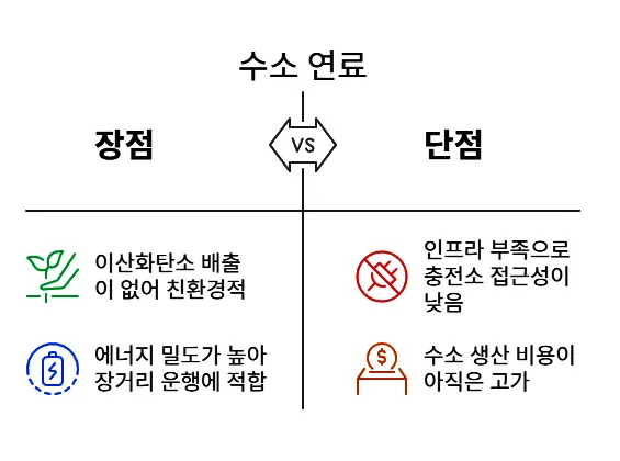 수소 연료는 분명 매력적인 에너지원이지만, 모든 게 완벽하진 않아요. 아래 리스트에서 장점과 단점을 간단히 정리해볼게요.