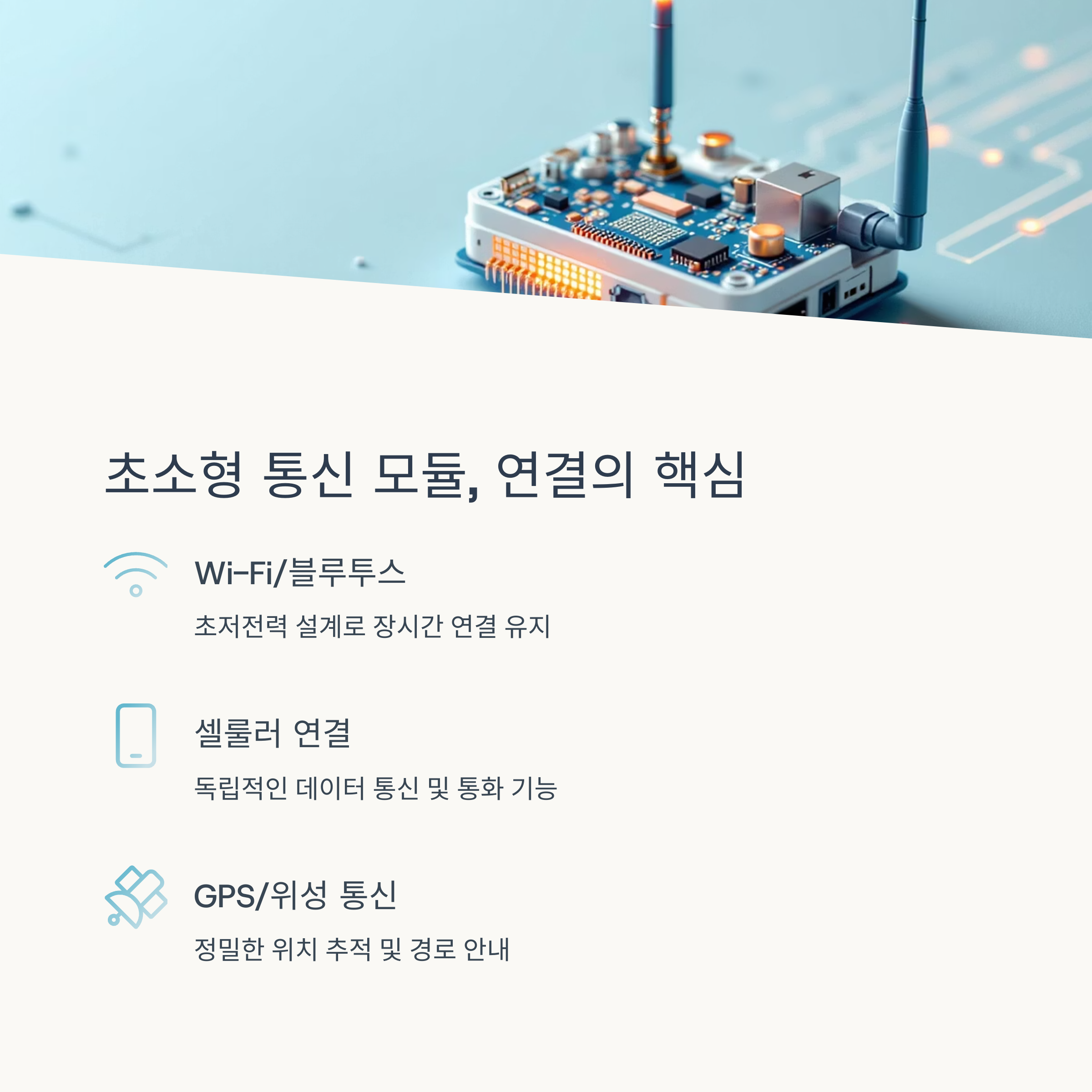 스마트워치가 스마트폰의 알림을 받고, 음악을 제어하고, 심지어는 단독으로 통화까지 할 수 있는 것은 바로 내장된 초소형 통신 모듈 덕분입니다. 저는 이 통신 모듈들을 '스마트워치의 입과 귀'라고 생각하는데요, 외부 세계와 끊임없이 소통하며 정보를 주고받는 역할을 하기 때문입니다. 가장 기본적으로는 블루투스(Bluetooth) 모듈이 탑재되어 스마트폰과 연결됩니다. 특히 저전력 블루투스(BLE) 기술은 배터리 소모를 최소화하면서도 안정적인 연결을 유지하는 데 핵심적인 역할을 하죠. 제가 처음 스마트워치를 사용할 때, 스마트폰을 가방에 넣어둔 채로 손목 위에서 메시지를 확인하고 음악을 바꿀 수 있다는 점이 정말 신세계였습니다.