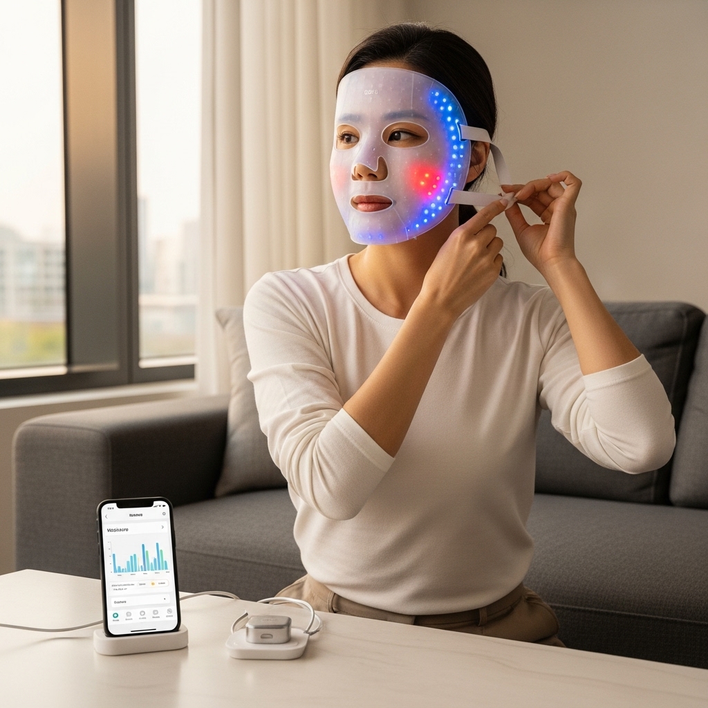 웨어러블 뷰티 디바이스는 말 그대로 '몸에 착용하는' 스킨케어 기기들을 말합니다. 대표적으로 LED 마스크, 미세전류 마스크, 진동형 아이케어 패치, 온열/냉각 패치, 스마트 필로우형 수면 트래커와 결합된 피부 관리 장치 등이 이에 포함됩니다. 이들 기기는 기존의 손으로 하는 스킨케어를 보완하거나 특정 피부 고민(예: 탄력 저하, 잔주름, 여드름 흉터, 색소침착 등)에 대한 지속적·집중적 관리를 가능하게 합니다.