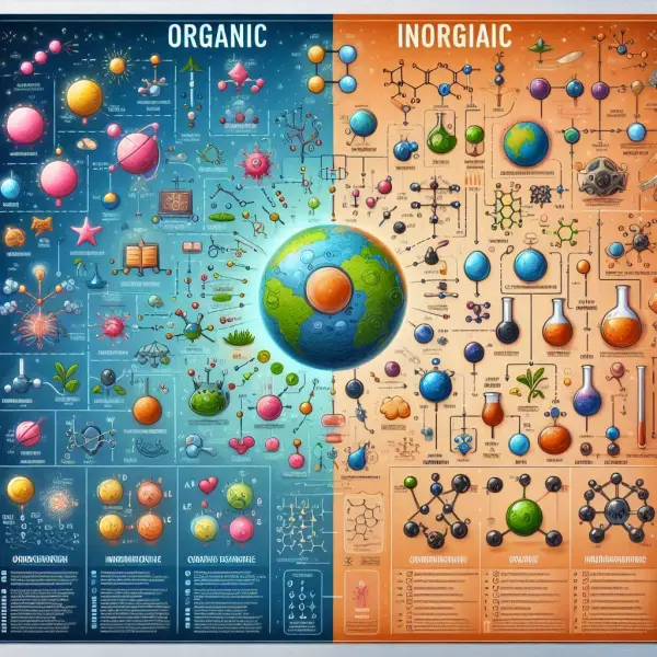 | 구성 원소 | 탄소(C) 기반, 수소(H), 산소(O), 질소(N) 등 | 탄소 미포함 또는 탄소-탄소 결합 없음, 수소, 산소, 질소, 금속 등 |