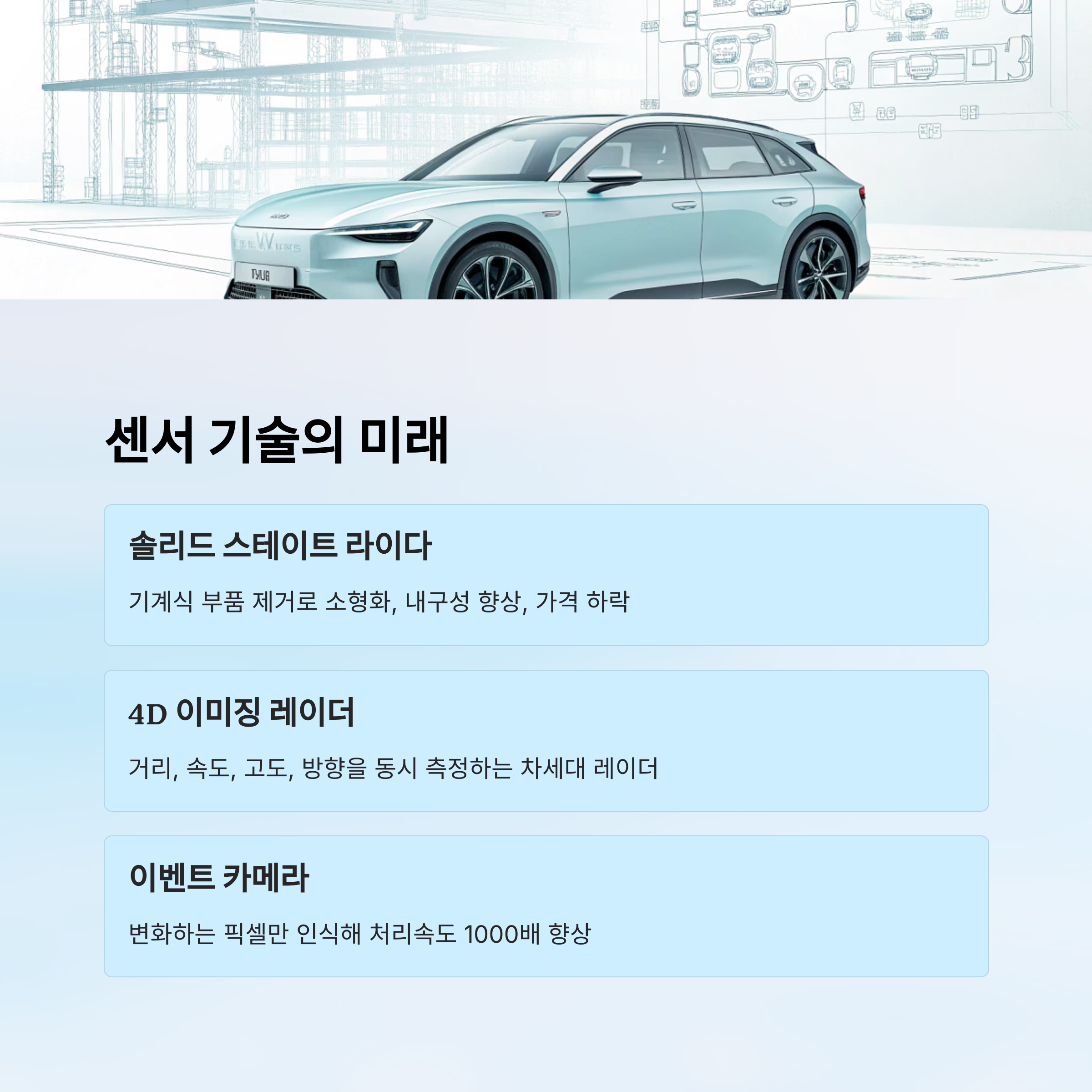 | 현대자동차 | 라이다, 카메라, 레이더 혼합 사용 | 코스트 효율성 추구, 단계적 적용 | 양산차 ADAS 확대 후 완전자율주행 전환 |