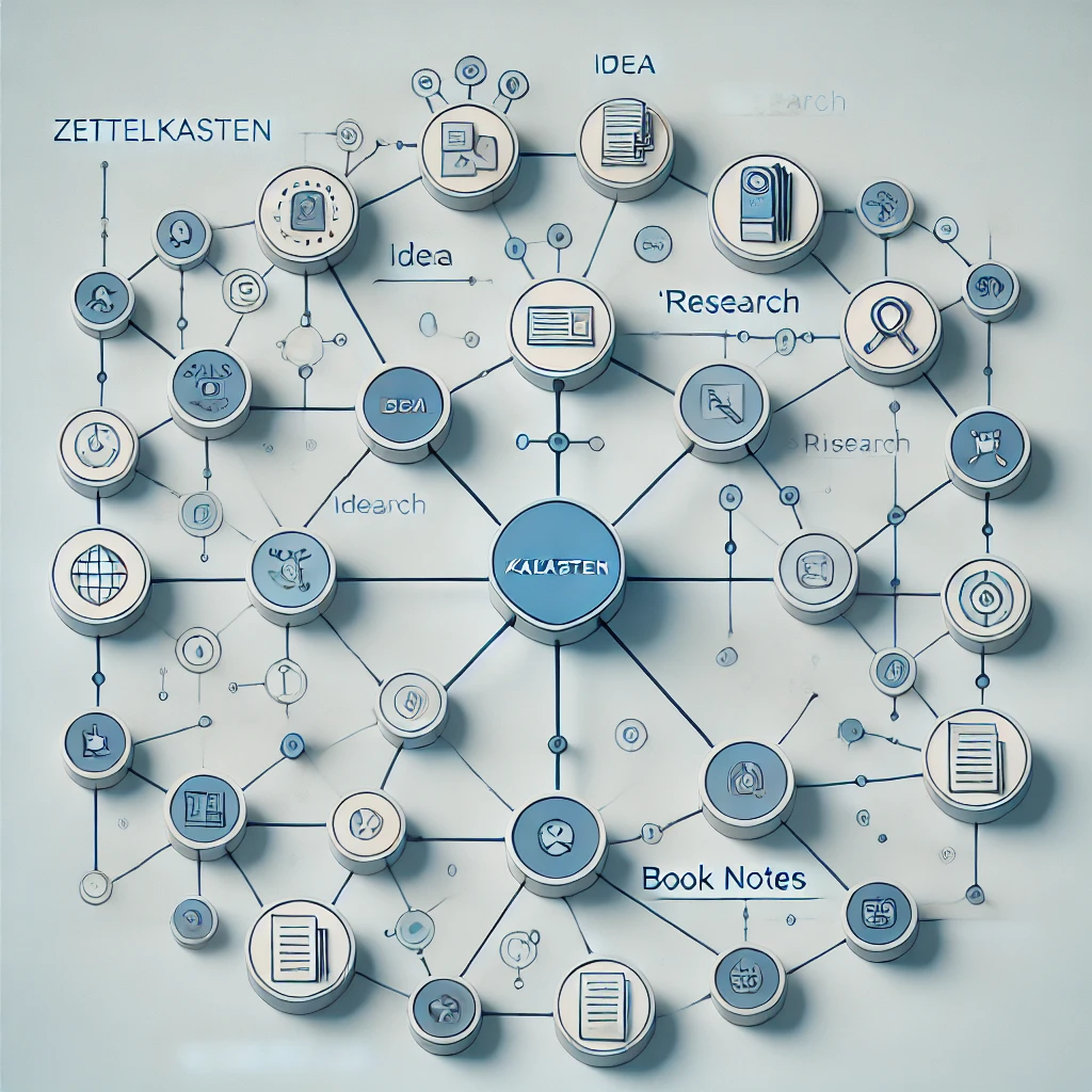 제텔카스텐은 독일의 사회학자 니클라스 루만이 고안한 메모 시스템으로, 단순한 정보 저장이 아니라 지식 네트워크를 형성하는 것이 핵심입니다. 각각의 메모(노트)는 독립적으로 존재하며, 서로 연결(link)되면서 새로운 아이디어를 만들어냅니다.