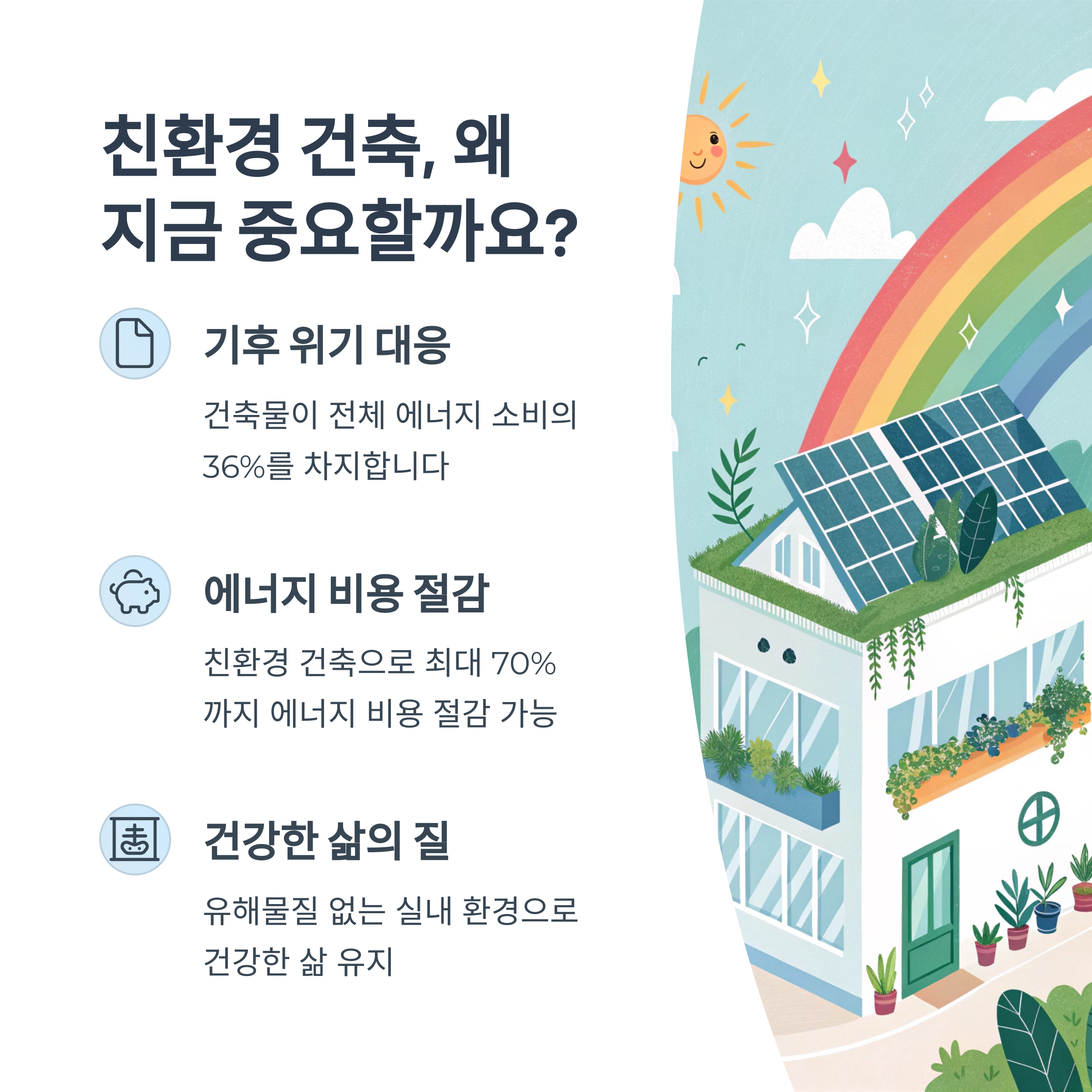우리가 살아가는 지구는 지금 몸살을 앓고 있습니다. 기후 변화, 자원 고갈, 환경 오염 등 여러 문제들이 우리의 삶을 위협하고 있죠. 건축물은 생각보다 많은 에너지를 소비하고, 탄소 배출의 주요 원인 중 하나로 꼽힙니다. 제가 최근에 읽은 한 보고서에 따르면, 전 세계 에너지 소비의 약 40%, 온실가스 배출의 약 30%가 건물 부문에서 발생한다고 해요. 정말 어마어마한 수치죠? 그래서 친환경 건축은 더 이상 선택이 아닌 필수가 되었습니다. 에너지를 덜 쓰고, 환경에 미치는 부정적인 영향을 최소화하며, 동시에 사람에게는 건강하고 쾌적한 환경을 제공하는 것. 이것이 바로 친환경 건축이 추구하는 목표입니다. 마치 자연과 건물이 서로 조화롭게 공존하는 모습을 상상하시면 될 것 같아요. 단순히 멋진 디자인을 넘어, 우리 아이들이 살아갈 미래를 생각하는 책임감 있는 건축이라고 할 수 있습니다.