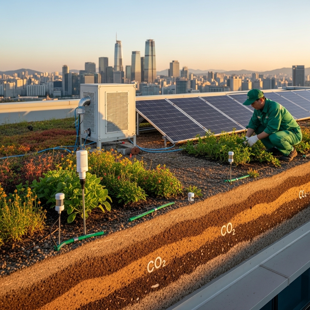 운영 및 유지관리 단계 — 탄소 흡수형 건축의 장기 성능은 운영 단계의 관리에 좌우됩니다. 녹지의 경우 정기적인 생육 모니터링, 토양 관리, 병해충 방제, 관수 시스템 점검이 필요합니다. 에너지 시스템은 EMS로 상시 모니터링하고 성능 저하 시 즉시 보완하세요. 탄소 흡수량 측정은 센서를 통한 실시간 데이터와 주기적인 현장 검증을 병행하는 것이 바람직합니다.