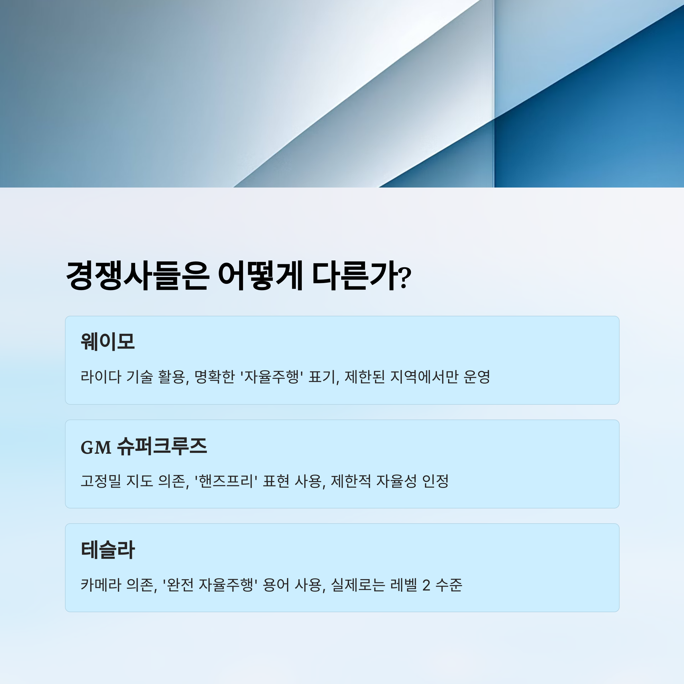 요즘 자동차 회사들이 내놓는 기술 이름들이 너무 헷갈리지 않나요? 테슬라의 '오토파일럿', GM의 '슈퍼 크루즈', 벤츠의 '드라이브 파일럿'... 이런 이름만 들으면 다 비슷해 보이는데, 실제론 기능과 한계가 천차만별이에요. 특히 '자율주행'이라는 말이 너무 쉽게 사용되다 보니 소비자들의 혼란이 가중되고 있습니다.