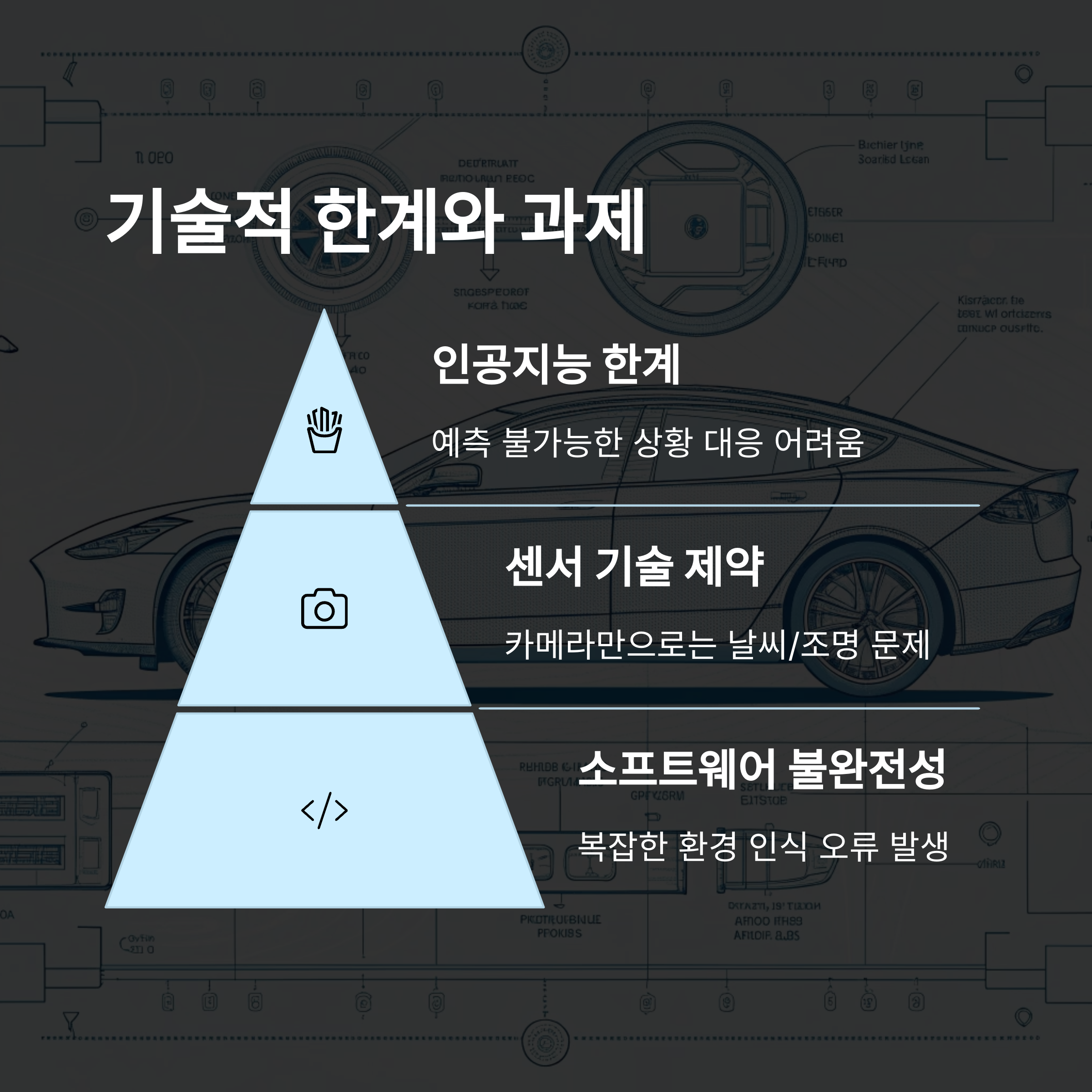 진정한 자율주행을 위해 해결해야 할 주요 기술적 과제들은 다음과 같습니다: