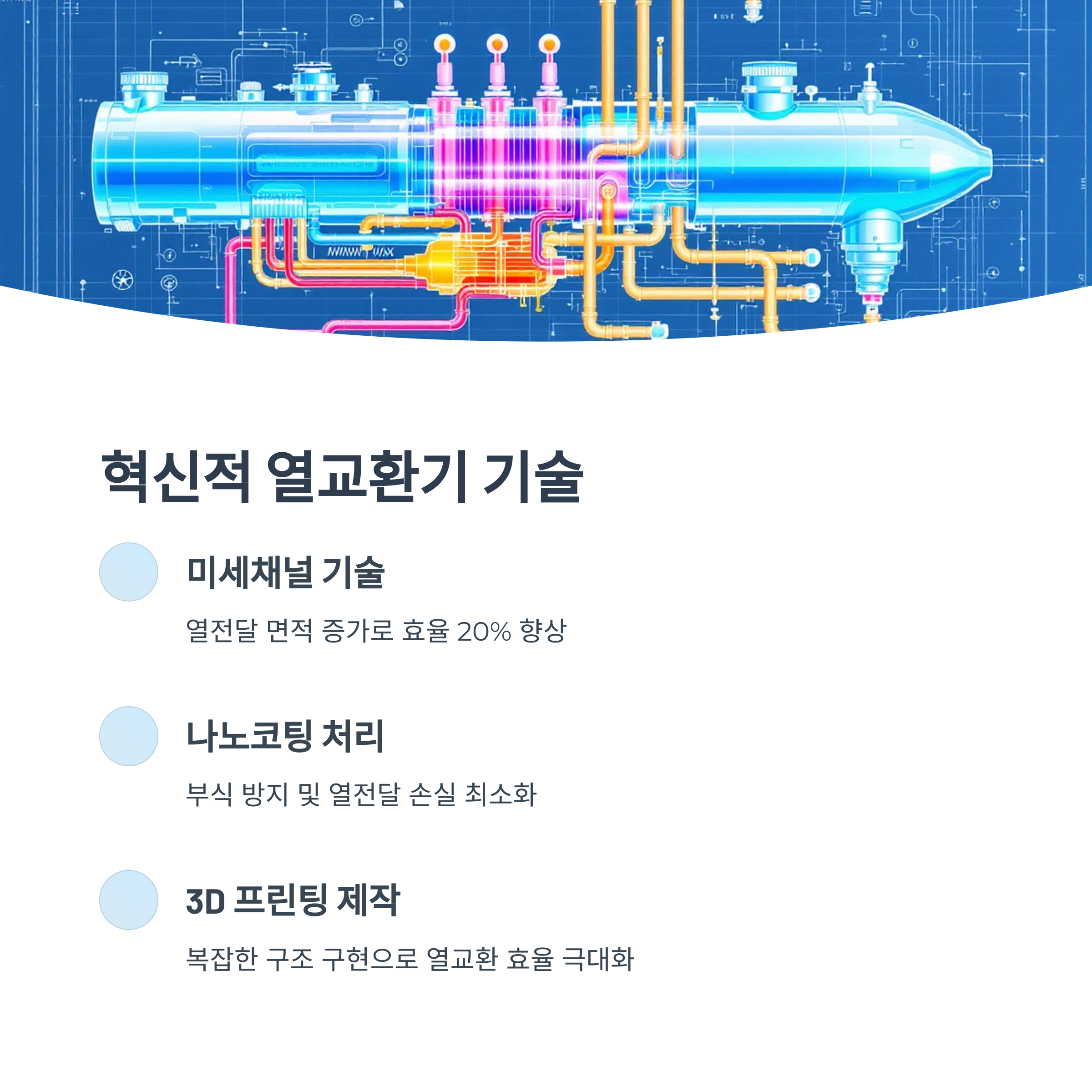 | 열교환기 효율 및 내구성 | 부식, 바이오파울링, 낮은 온도차 | 고효율 신소재 개발, 표면 처리 기술, 혁신적 열교환기 설계 |
