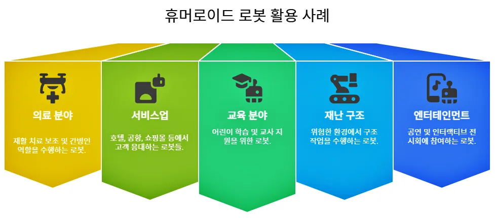 휴머로이드는 이미 다양한 산업에서 활용되고 있습니다. 단순한 안내 역할부터 의료 보조까지 그 범위가 확장되고 있죠. 대표적인 활용 사례를 살펴보겠습니다.