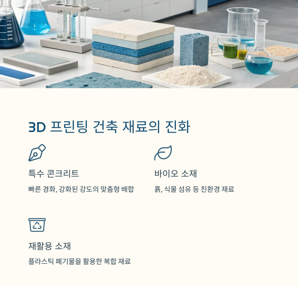| 지오폴리머 | 산업 폐기물로 만든 친환경 시멘트 | 탄소 배출량 80% 감소, 내화성 | 생산 비용 높음, 표준화 어려움 |