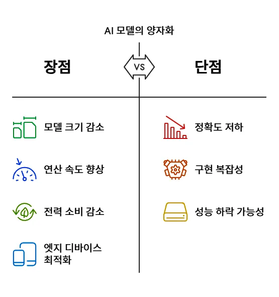 양자화는 AI 모델을 최적화하는 데 필수적인 기술이지만, 모든 경우에 최적의 선택이 될 수는 없습니다. 여기서 양자화의 주요 장점과 한계를 살펴보겠습니다.