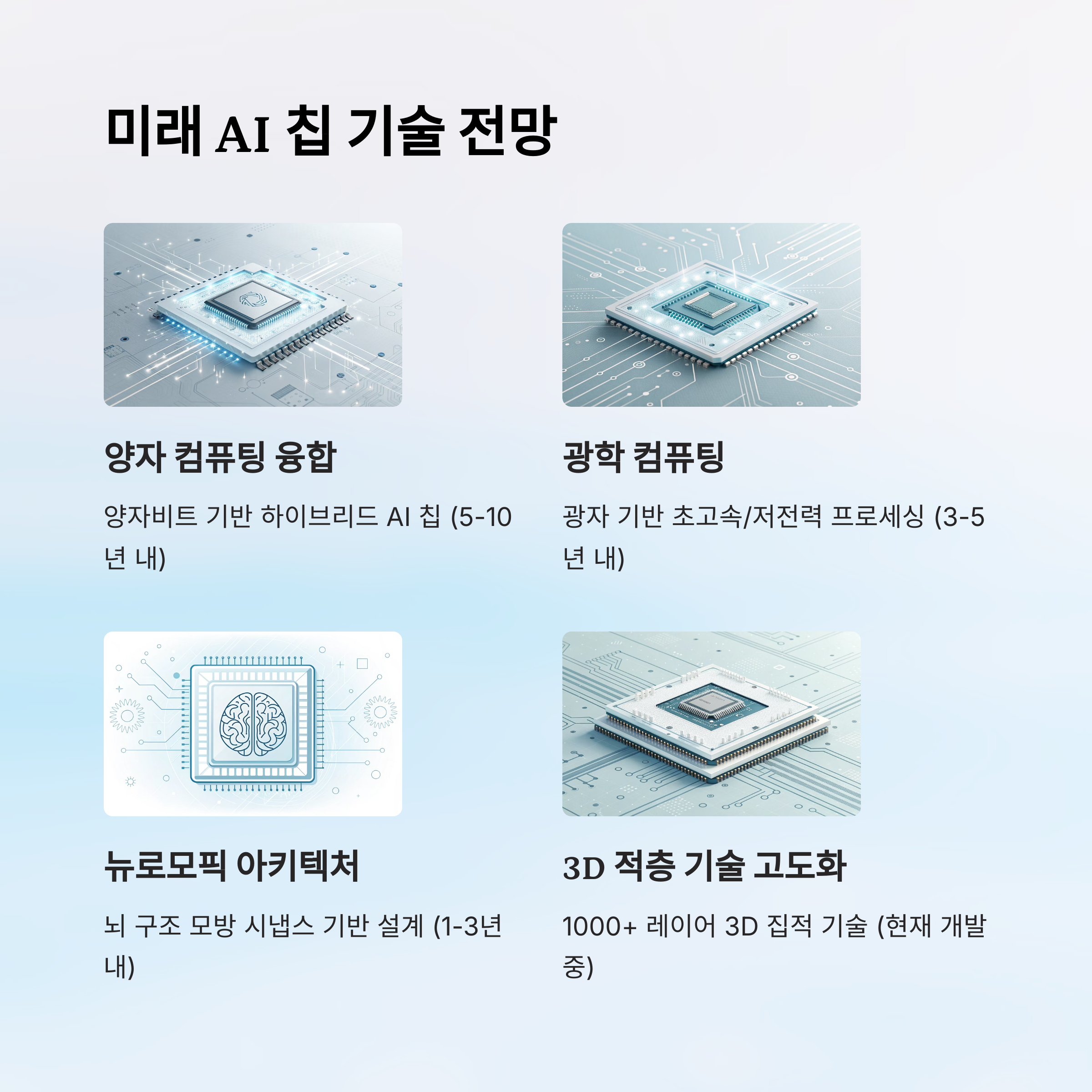 제 개인적인 예측을 하자면... 음, 뭐랄까, 5년 안에 현재 최고 성능 칩보다 10배 이상 효율적인 AI 전용 칩이 등장할 것 같아요. 그리고 이런 발전이 AI의 민주화를 가속화해서, 지금은 대기업이나 연구소만 학습시킬 수 있는 모델들을 개인도 학습시킬 수 있는 시대가 올 거에요.