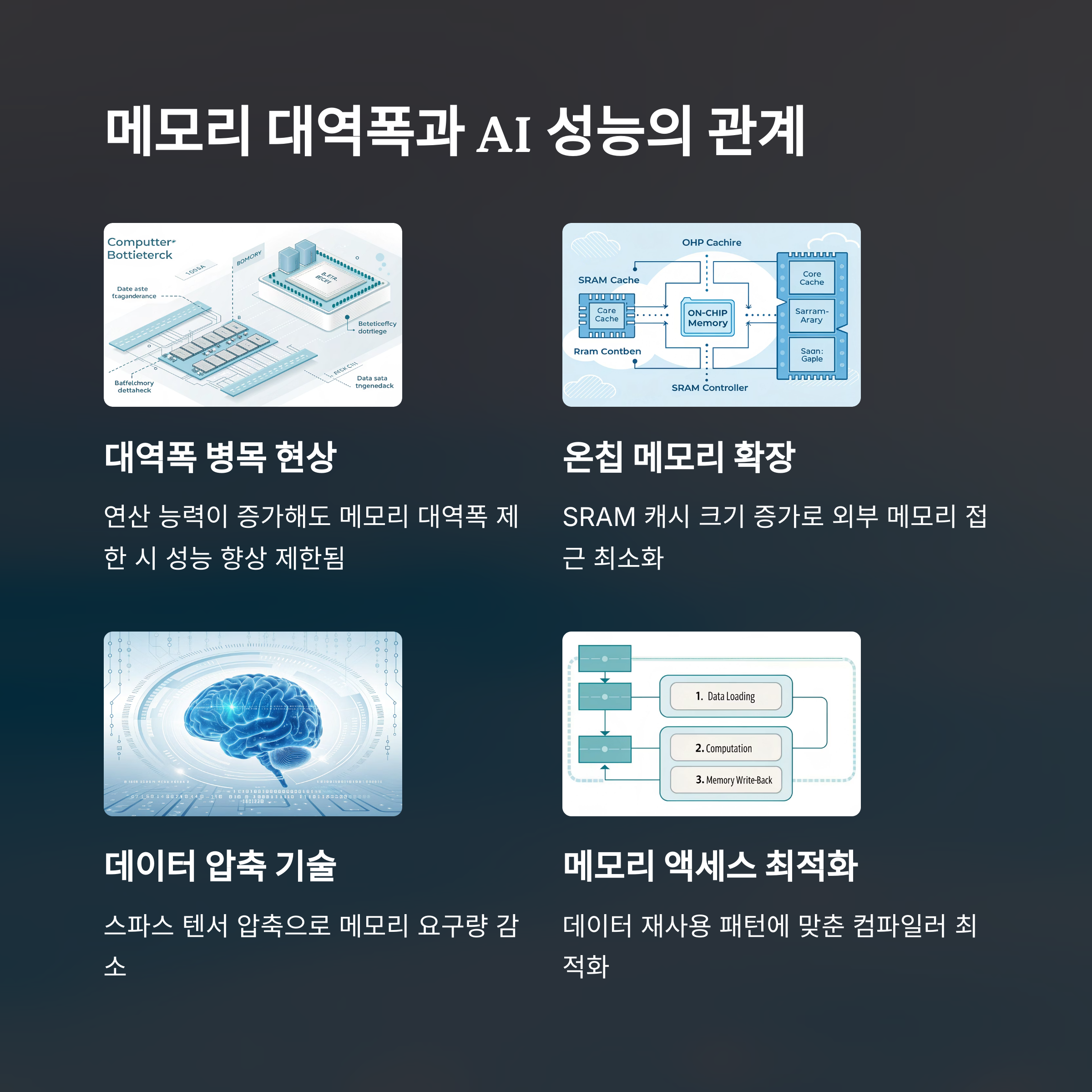 딥러닝 모델 학습 과정을 생각해 보면 이해가 쉬워요. 모델은 끊임없이 가중치 데이터와 입력 데이터를 메모리에서 가져와 연산을 수행하고, 결과를 다시 메모리에 저장하는 과정을 반복합니다. 그니까 아무리 연산 자체가 빨라도 데이터를 메모리에서 빠르게 읽고 쓸 수 없다면, 전체 학습 속도는 느릴 수밖에 없는 거죠.