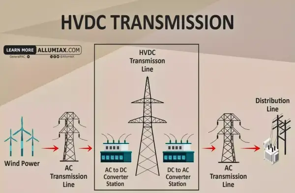 발전소에서 생산된 교류 전력을 정류기를 통해 직류로 변환 직류 형태로 전력을 장거리 전송 목적지에서 인버터를 통해 다시 교류로 변환하여 배전 전력 변환과 전송 과정 전력은 변환기 스테이션에서 교류에서 직류로 변환된 후, 고압 직류로 송전됩니다. 도착지에서는 다시 직류를 교류로 변환하여 전력망에 공급됩니다.