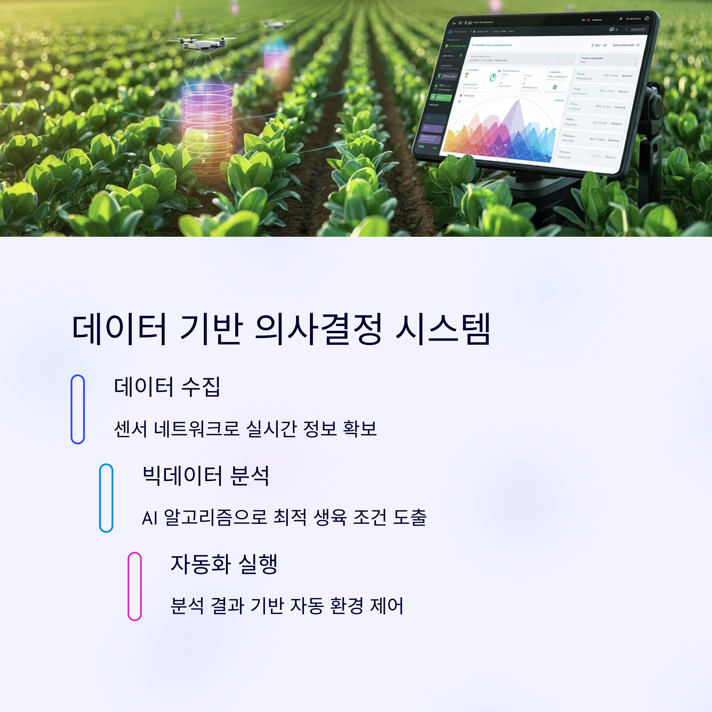 | AI 의사결정 시스템 | 수집된 데이터 기반 최적 환경 조건 예측 | 생산성 향상, 자원 사용 최적화 |